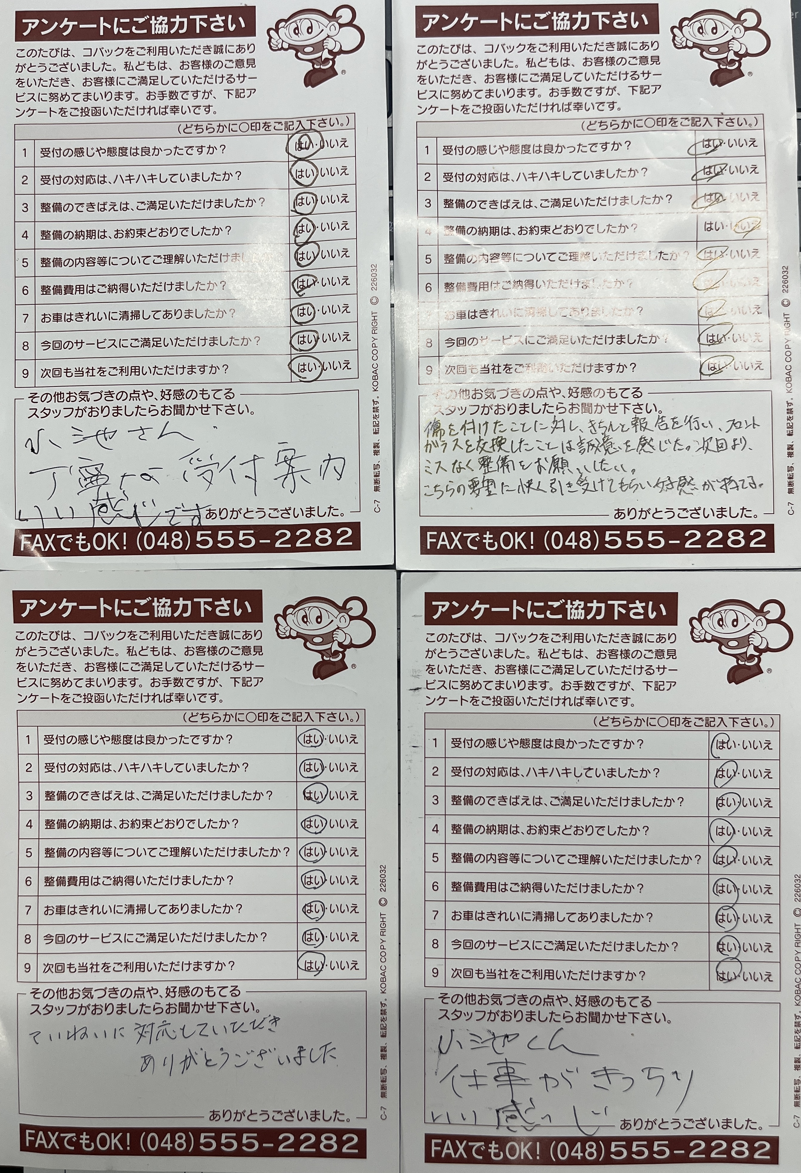 お客様からの車検後のアンケートはがき抜粋をご紹介いたします。